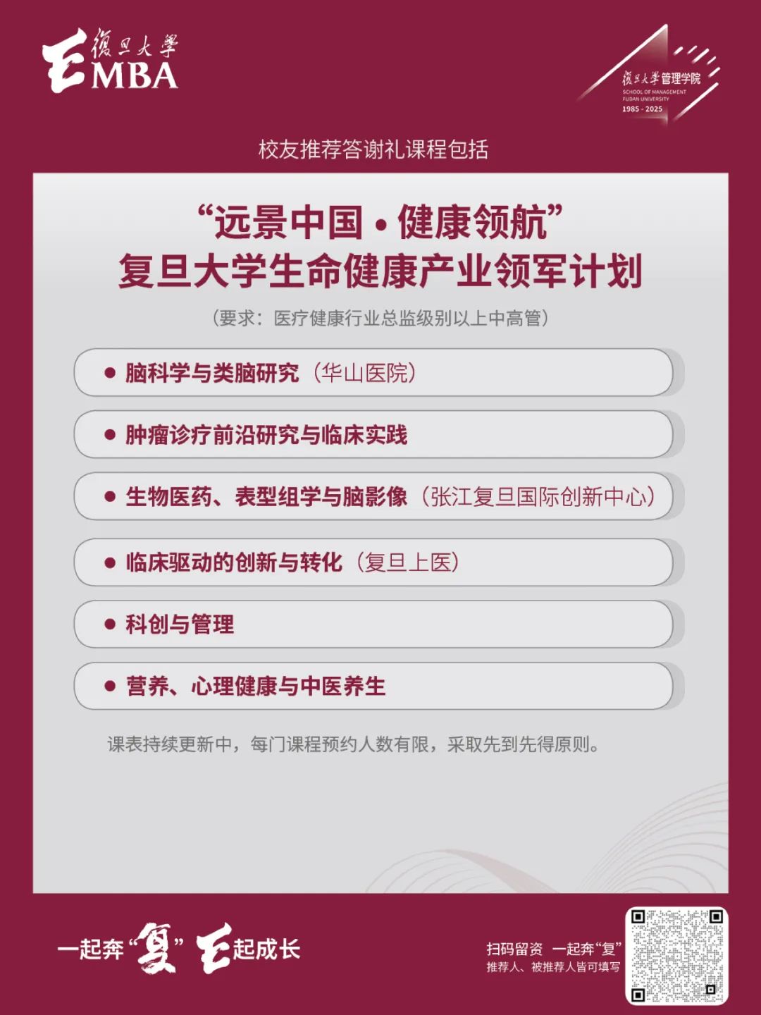 🔘“远景中国·健康领航”复旦大学生命健康产业领军计划等核心课程。