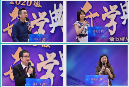 莅临本次开学典礼的领导嘉宾有复旦大学研究生院常务副院长陈焱教授、复旦大学管理学院副院长吕长江教授、复旦大学MPAcc项目学术主任李若山教授、复旦大学MPAcc项目主任娄贺统教授、管理学院教师代表、2019级MPAcc学生代表。各位领导嘉宾共同欢迎2020级复旦MPAcc新生的到来,见证他们在复旦开启新篇章。