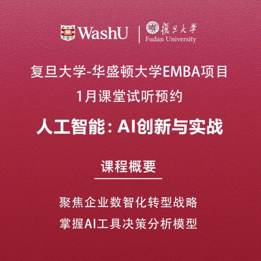 《人工智能: AI创新与实战》开放试听 | 复旦-华盛顿大学EMBA 1月试听课NEW
