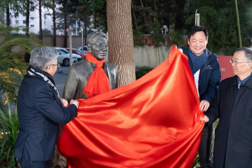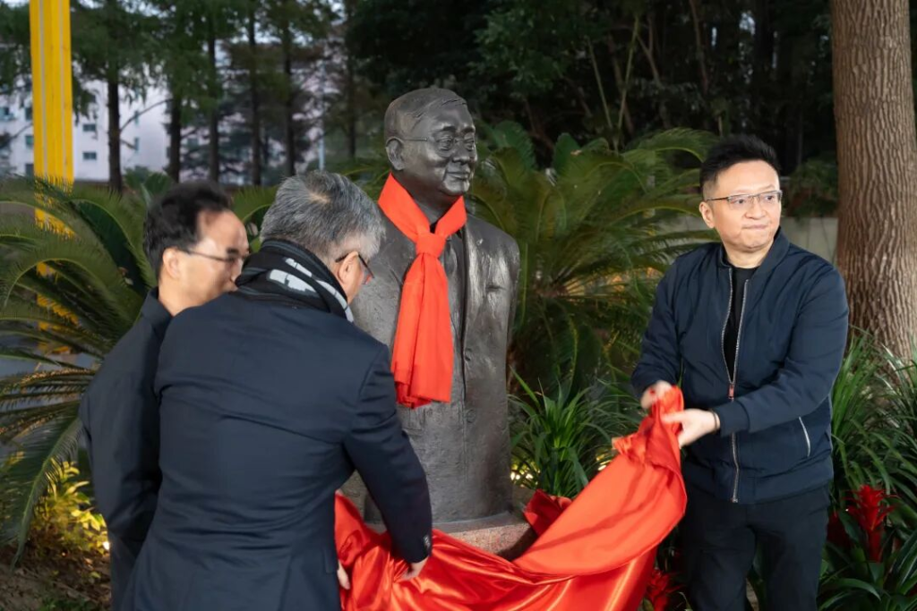 陆雄文书记、郑宇校友、杜昌勇校友共同为郑祖康老院长雕像揭幕。