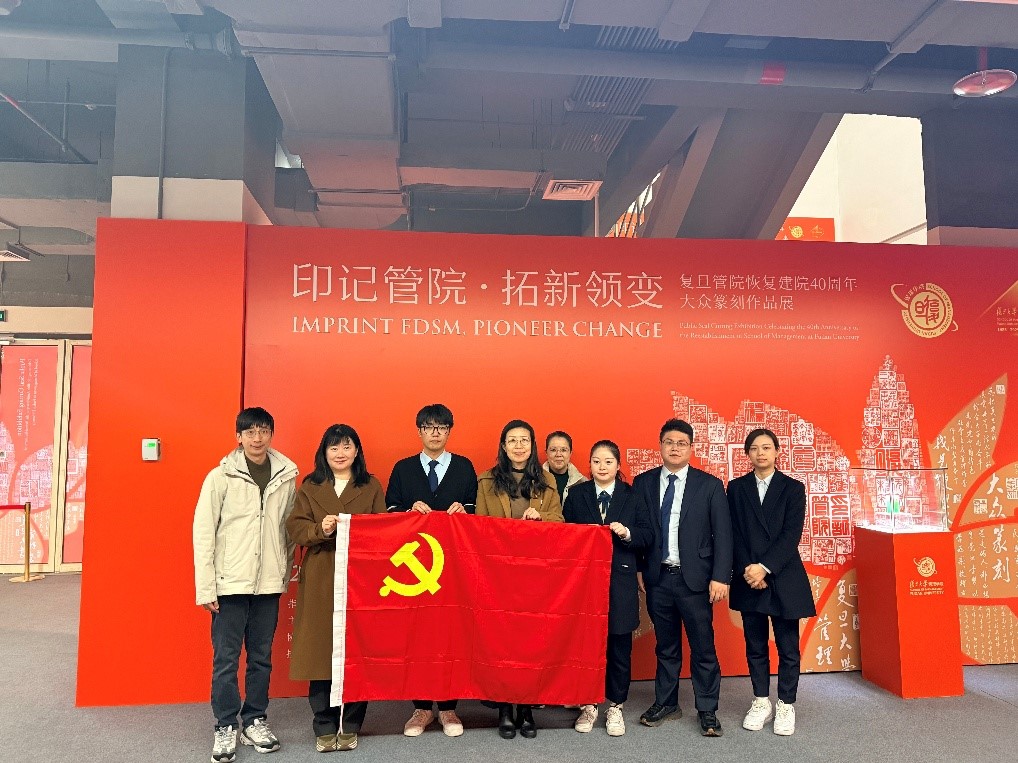 2025年10月23日,“印记管院 拓新领变—复旦管院恢复建院40周年大众篆刻展”在复旦大学管理学院政立院区隆重开幕。此次展览以“印记管院 拓新领变”为题,追溯历史脉络,精选80余个凝结商科发展和管院记忆的关键词,并以此为基础设计制作篆刻印章。展览以印章为载体,串联起复旦商科百年积淀与管院四十载拓新之路,吸引了学院各支部陆续前往参观。大家在欣赏篆刻艺术之美的同时,回顾了管院40年奋斗与辉煌的历程,更在传统与创新的碰撞中感悟到复旦、管院的人文情怀。