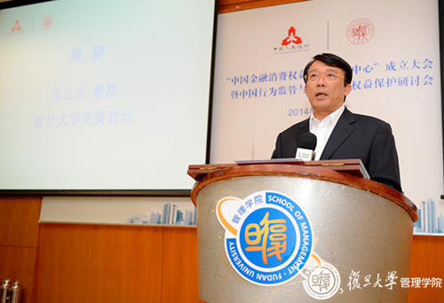 复旦大学校党委书记朱之文教授在致辞中代表复旦大学对在座嘉宾们的莅临表示热烈欢迎,同时对中心的成立表示热烈的祝贺。“加强金融消费权益的保护,已成为国际社会的共识,是金融机构的责任,也是高校研究的使命。”朱之文书记强调,中国人民银行金融消费权益保护局与复旦大学管理学院的合作,体现了双方的责任担当。“希望中心成立后产出更多优质的合作成果,为推动金融理论与实践的发展作出更大的贡献。”