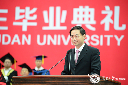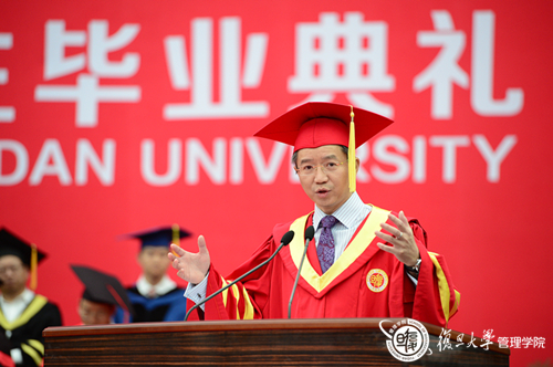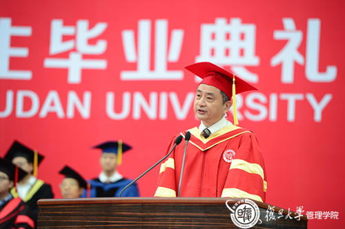 随后,陆雄文院长代表学院向圆满完成学业的1668名毕业生致以最热烈的祝贺,并向各位毕业生家长和亲朋好友致以衷心的感谢和诚挚的祝贺。“这是一个风云际会、波澜壮阔的时代,从复旦走出的同学们一定要记住管理学院的使命:成为社会发展的中坚力量,成为未来中国与世界的栋梁之才。”当下的世界,美国还将继续担任领导世界的重要角色,陆雄文院长随后发问:在这样的世界形势下,中国应该扮演怎样的角色?管院学子应该如何建立与社会、与世界的联系?“盘点中国的历史资产,我们发现,古代中国在相当长的时间段中都是实力最强的国家。但现实的资产却不容乐观,当代中国的经济总量只有美国的一半,人均GDP处于中等收入国家的水准,技术与商业创新落后于发达国家,人口红利逐步丧失,经济与产业结构转型势在必行。”“天下兴亡,匹夫有责”。陆雄文院长强调,在这个大转型、大变革、大发展的时代,管院学子更要积极参与推动社会发展的进程。