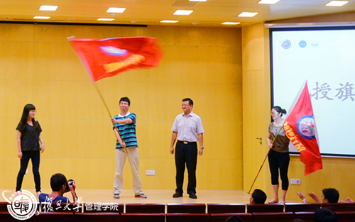 会上,我院党委副书记赵伟韬向硕博和本科学生代表分别授予了“朝阳行动”队旗。本科生陈都和硕博生李帅男作为学生代表接过队旗,并发表了各自对“朝阳行动”的理解和展望。