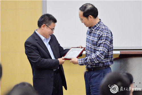 演讲结束后,我院副院长吕长江教授向邱运平校友赠送了纪念铭牌。此次演讲也是2014年“金融家之夜”系列活动的第一讲,职业发展中心还将举办更多更精彩的后续活动。