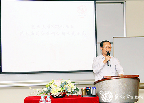2014年9月27日晚,复旦大学MPAcc项目第六届财务案例分析大赛决赛在史带楼601举行。我院副院长吕长江教授、会计学系陈超教授、商业知识发展与传播中心于保平老师,德勤会计事务所合伙人林绥先生,香港会计师公会北京代表处首席代表张勤先生等出席决赛并担任大赛评委。来自MPAcc项目2014级的两位学生严国庆、谢昳君主持了了本次大赛。