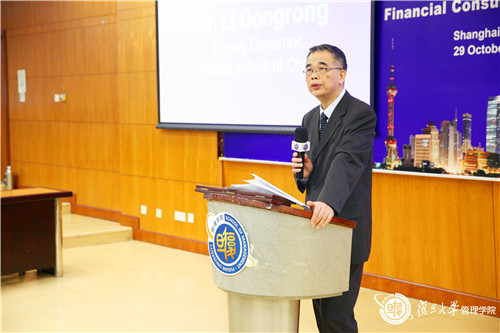 我校常务副校长陈晓漫教授、中国人民银行副行长李东荣、上海市金融服务办公室副主任吴俊、国际金融消费权益保护组织主席Bernard Sheridan,以及来自全球17个国家的金融消费权益保护部门的专家共同出席了本次大会。