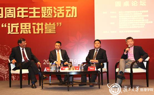 随后,在陆雄文院长的主持下,2003级MBA校友、我院北京校友联络处副主任、瑞银证券财富管理部董事总经理刘志坚和我院2012级EMBA校友、复旦EMBA北京同学会会长、北京联合永道软件股份有限公司总裁张春与李若山教授就经济常态化后的企业经营之道展开了热烈的圆桌对话,时时碰撞出思想的火花,现场气氛再次达到高潮。整场活动在校友们的踊跃提问中圆满落下帷幕。