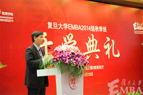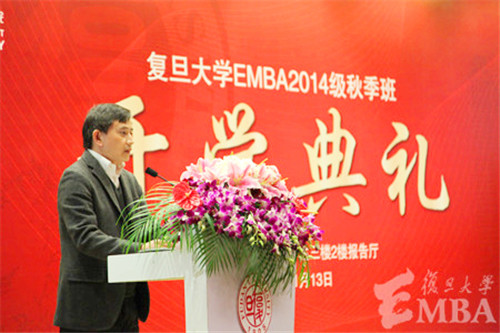 我校研究生院副院长楚永全首先致辞。他表示,复旦大学即将迎来建校110周年的重要时刻,一百多年来一代又一代复旦人的奋斗与努力,使得复旦大学成为世界知名的高等学府。“作为事业有成而回炉学习的复旦EMBA新生们,不仅应当具有荣誉感,更应心怀使命,担负起社会的责任。在中国面临经济转型的今天,复旦EMBA学子不仅是有丰富管理知识的企业领导者,更应该是兼具企业家精神和人文素养的社会进步引领者。”