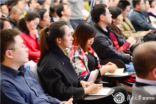 整场活动的主持人由我院管理教育推广与发展中心副主任韩冰担任。她简要介绍了复旦大学管理学院的专业学位教育体系,以及蓝墨水精英教育计划的源起。该计划是在2009年经济危机的背景下推出的公益项目,通过校园开放日、公开课、公益讲座和开放时间等多种形式,旨在为职场精英人士提供开放性学习平台,从而应对瞬息万变的工作环境,直面多元挑战,实现自我超越。