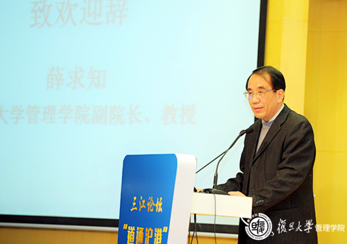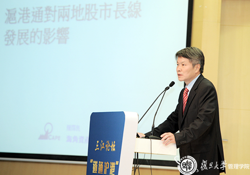 紧随其后,我院副院长薛求知教授代表学院向来宾表示了诚挚欢迎。他介绍了本次论坛得以举办的契机和过程,并概述了“沪港通”举措对上海乃至中国的金融发展的深远影响。