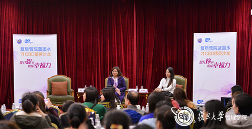 2016年3月11日,由复旦大学管理学院主办的蓝墨水CBD精英沙龙举行。领导力和团队教练、人力资源管理专家、复旦管院特聘企业导师侯蓓莉女士和上海瑞安房地产瑞虹新城项目总监、复旦大学EMBA项目校友刘梦洁校友围绕女性如何提升职场幸福力的话题,分享了自己的职场经历并给予了相关建议。
