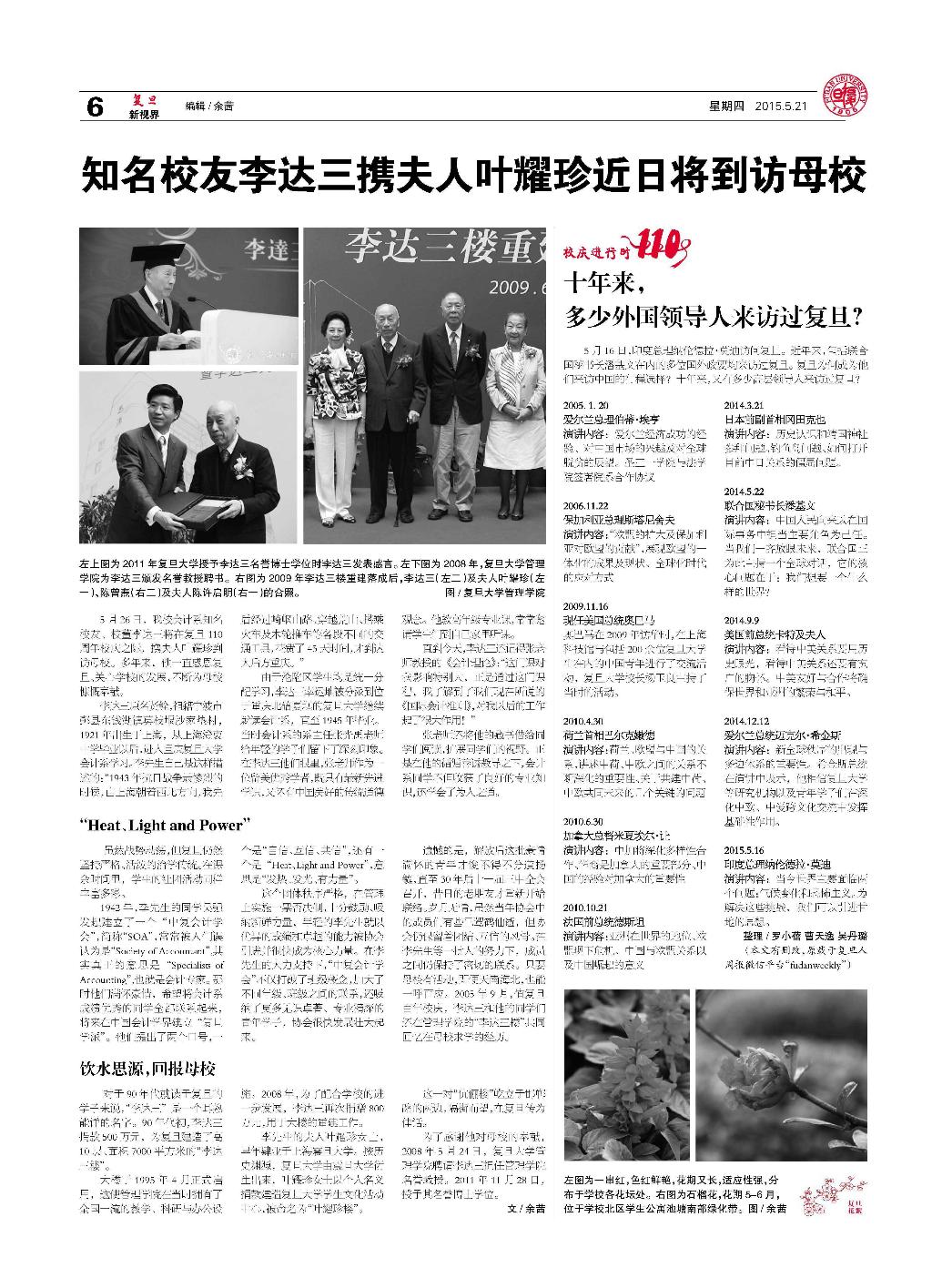 复旦校报—知名校友李达三携夫人叶耀珍近日到访母校