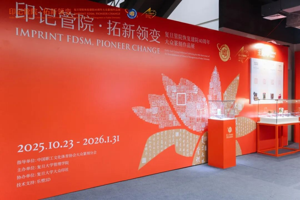 “诗书画印”是中华文化传承的根与魂,大众篆刻则是对传统篆刻的守正创新。10月23日,“印记管院 拓新领变——复旦管院恢复建院40周年大众篆刻作品展”在复旦大学管理学院政立院区启幕,展览将持续至2026年1月31日。这场展览,以大众篆刻作品展的形式,开启了一场联结复旦商科历史和管理学院40年发展成就的文化表达。