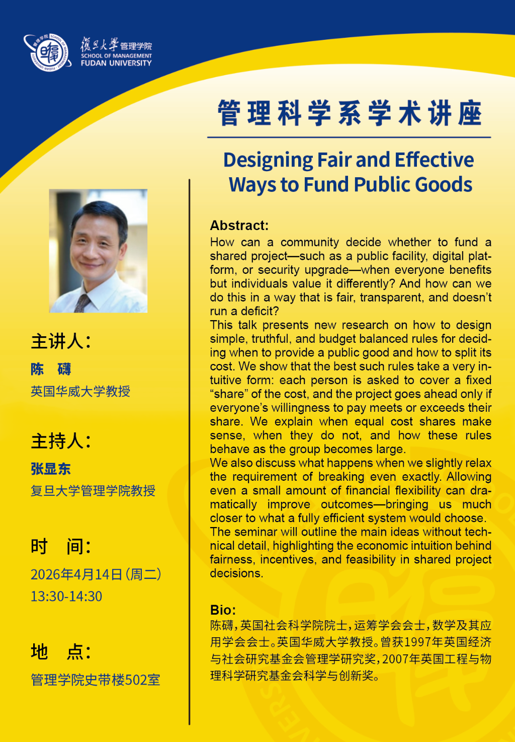 主 题:Designing Fair and Effective Ways to Fund Public Goods