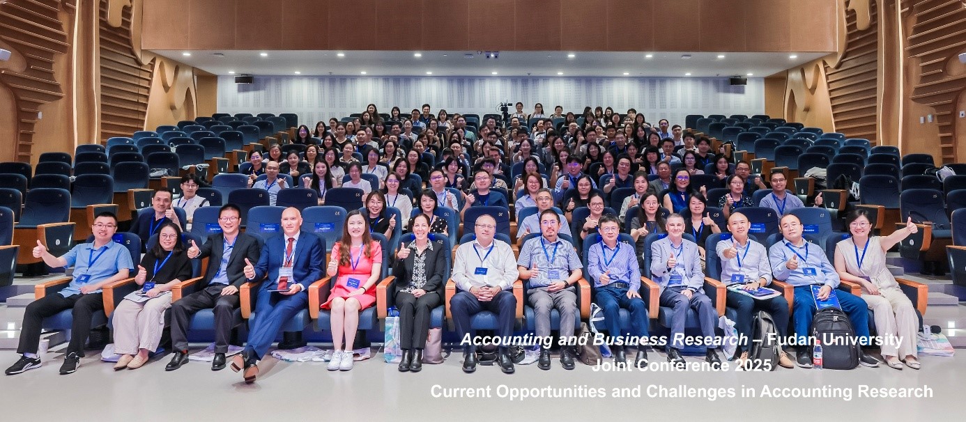 | ABR - Fudan University Joint Conference in Shanghai, China (Sept 4-5, 2025) This event  co-organized by Accounting and Business Research (ABR) and Fudan University was successfully held over September 4-5, 2025 at the Zhengli Campus of Fudan School of Management (Fudan SoM). The conference was themed ^Current Opportunities and Challenges in Accounting Research ̄ and brought together over 150 distinguished experts and scholars from leading universities and research institutions across China (including Hong Kong and Macau), the United Kingdom, the United States, Canada, Australia, France, Sweden, Denmark, Singapore, South Korea, and beyond. Participants engaged in discussions on the latest developments and key issues in accounting research to promote the advancement of the discipline.  Group photo of the conference participants