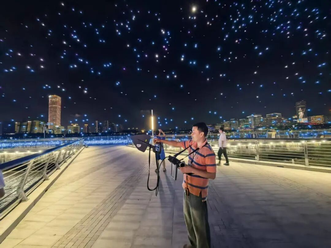 对管敏杰来说,从400架到千架,无人机表演变化的不仅仅是规模,更是技术的成熟与心境的沉淀。他曾置身人群中,在无人机点亮的夜空下,聆听耳畔此起彼伏的惊叹声;如今他坐在了控制台前,在每一次演出后与团队复盘像素点的呈现精度。他笑着表示:“说实话,每次飞完,我都想着下次能不能做得更好一些。”