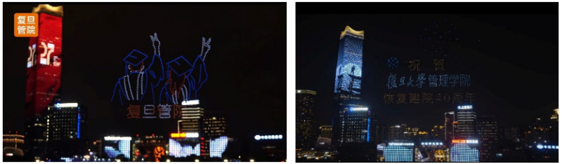 五年后,当学院迎来恢复建院40周年,他再次慷慨赞助北外滩无人机表演,用璀璨光影为院庆增光添彩,让“复旦管院”的字样在夜空中熠熠生辉。“没什么特别的想法,就是出于对母校的很朴素的感情。”他谦逊地表示。