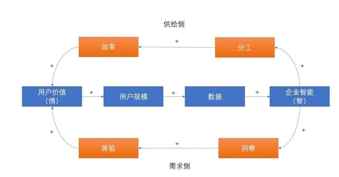 用户规模的扩大,会为企业带来更丰富的数据,进一步提升企业的智能化水平,从而创造更好的体验,实现新的循环。