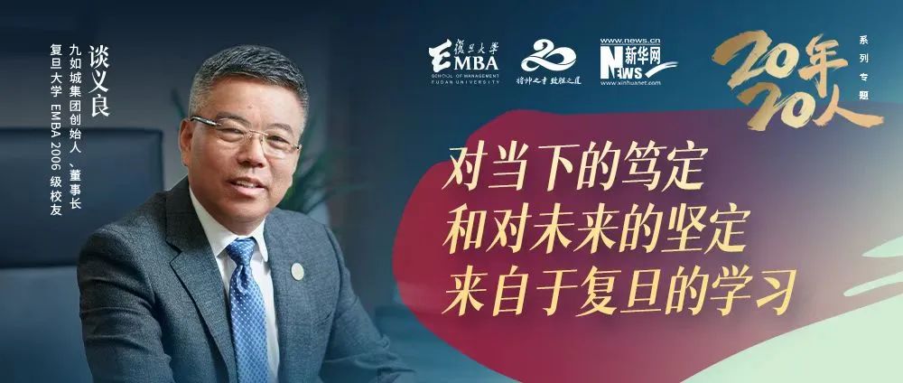复旦大学EMBA联合新华网共同推出《20年20人》专题报道,共同聚焦这二十年来推动中国商业文明进步的企业家校友们。