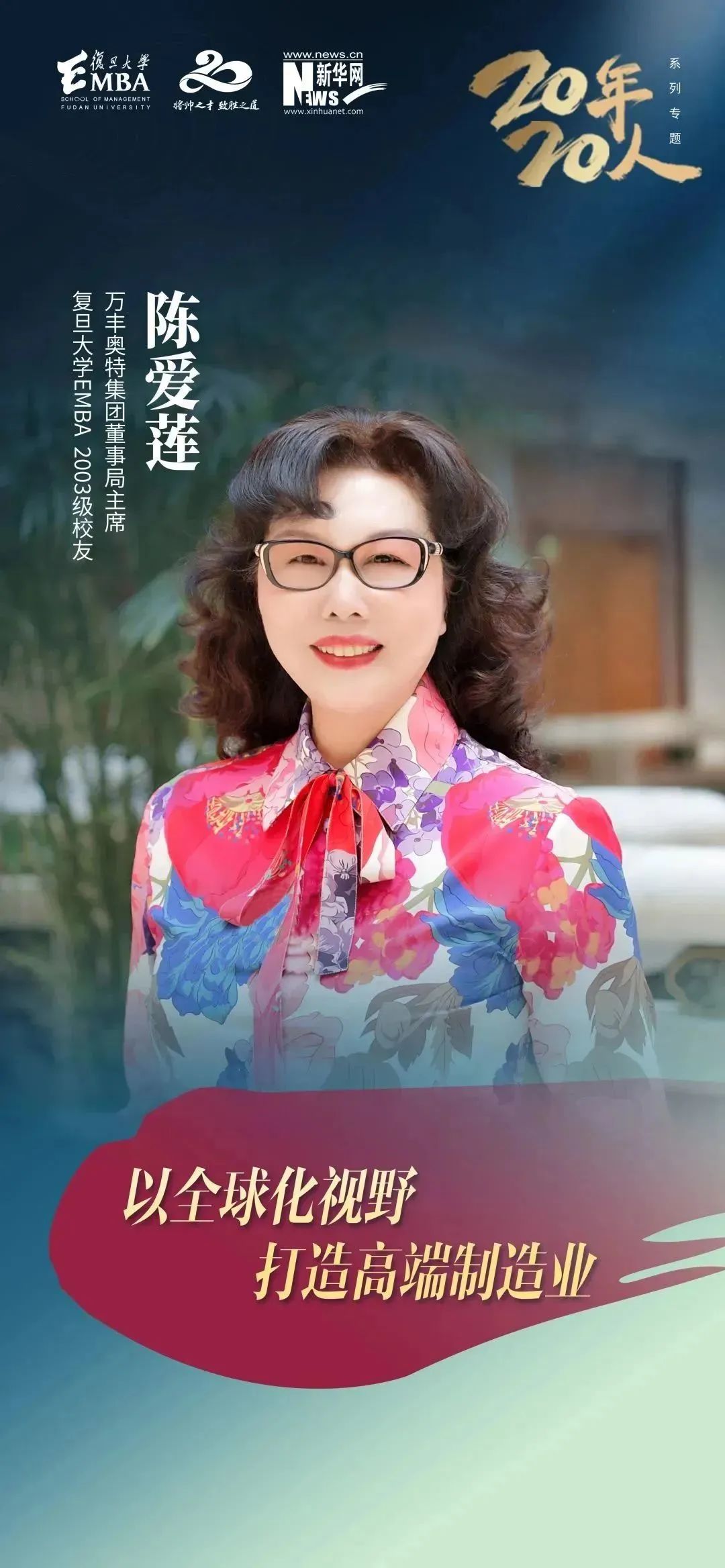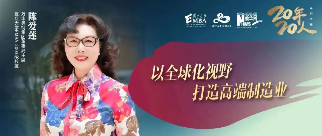 在复旦大学EMBA成立二十周年之际,新华网独家专访了复旦EMBA 2003级校友、万丰奥特控股集团董事局主席陈爱莲,通过她的创业经历、管理实践、全球化并购探索,探访中国制造业的转型升级之路。