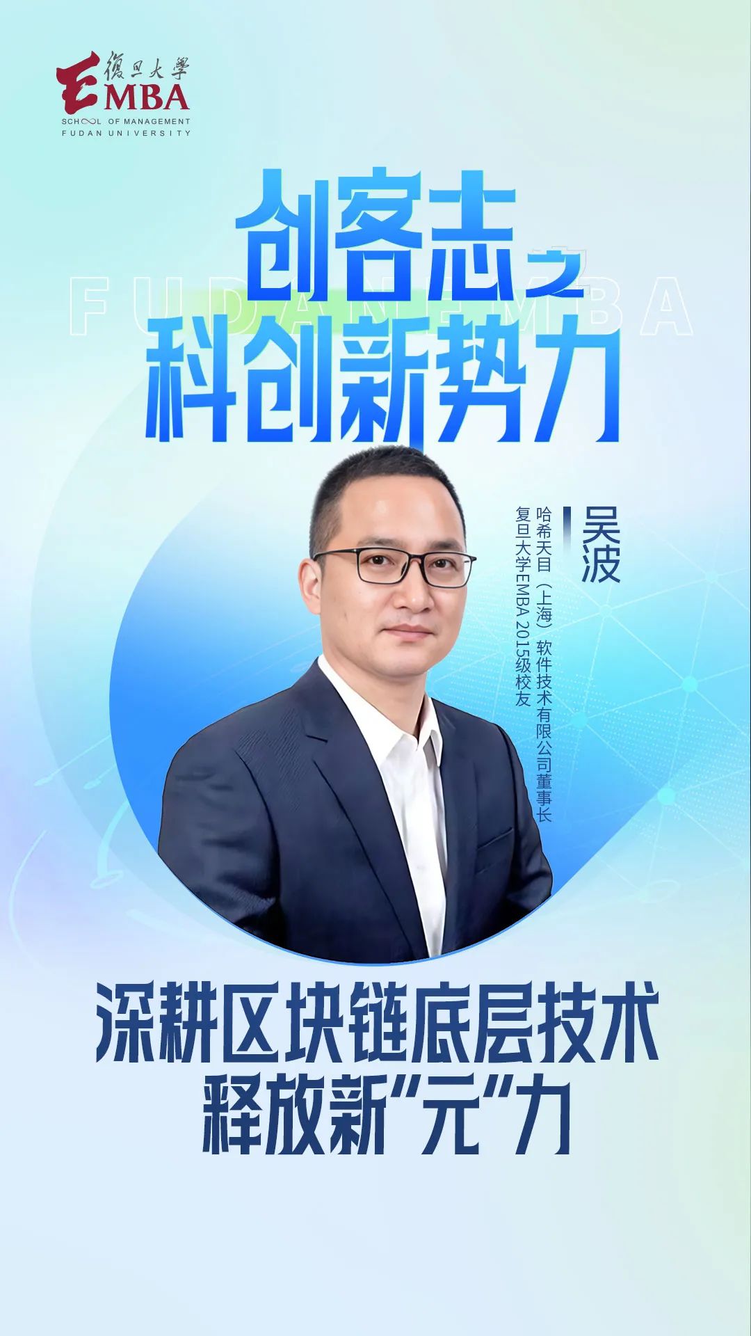 从最初的“白手起家”,到发力区块链,再到如今以“社交”为切入口,哈希天目(上海)软件技术有限公司(以下简称“哈希天目”)董事长,2015级复旦EMBA校友吴波一路带领企业深耕技术,在元宇宙的世界里闯出了一片天。作为一个身处前沿技术产业的企业家,吴波始终相信科技的力量,希望以实际行动探索更美好的科技未来。