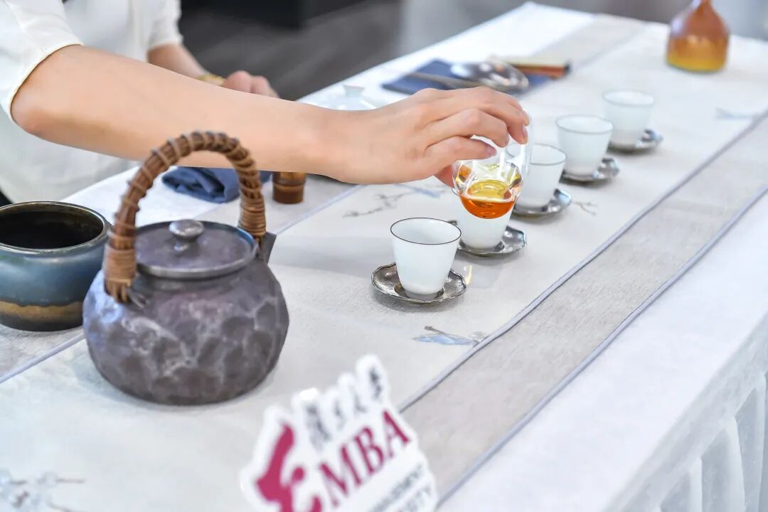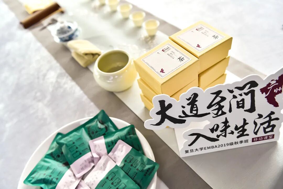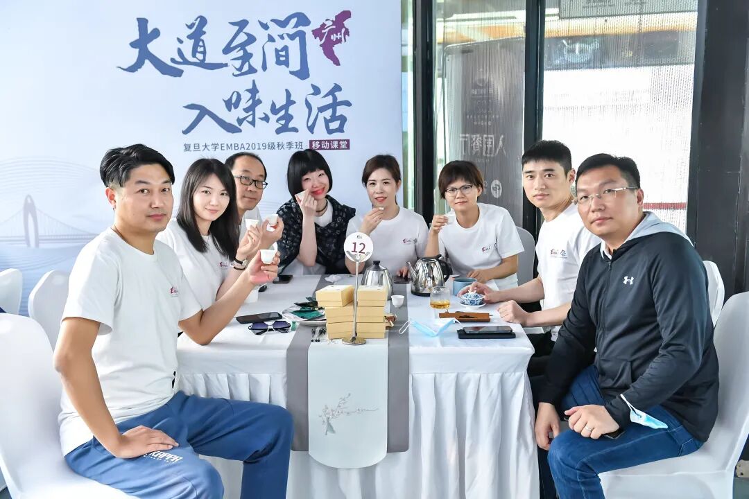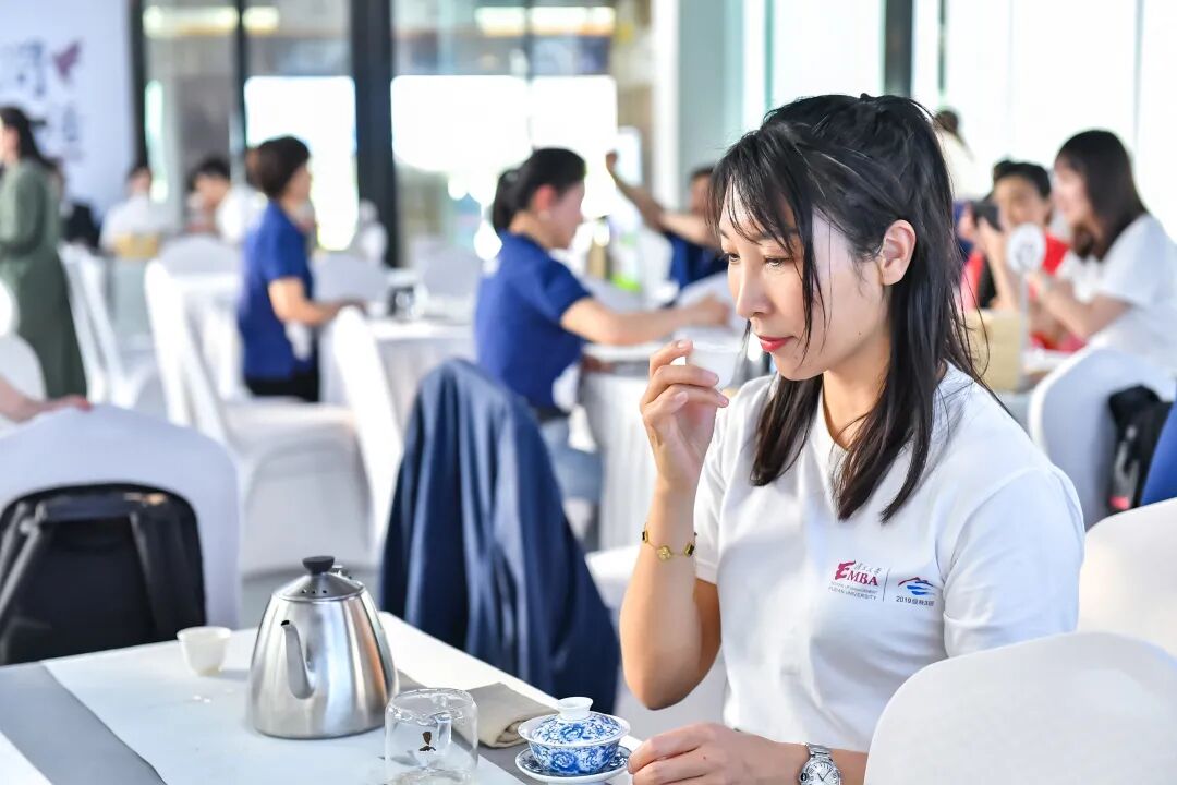 忙碌的学习之余,复旦大学EMBA的师生们还共同参与了茶文化体验课程。一叶见方寸,一茶现万千。茶从不高深晦涩,但却足够宽广博大。人与茶,杯盏间,尽显“大道至简”之精髓。