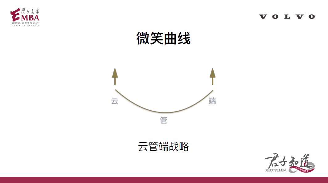 后来,终端的战略部画了一个图形挽救自己,就是微笑曲线,叫“云管端”。
