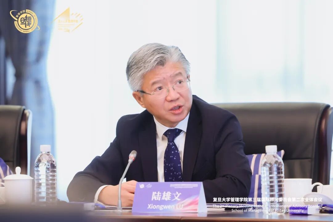 Xiongwen Lu, Dean of the School of Management at Fudan University, reported to the International Advisory Board on the achievements of the School over the past year and its future development strategy in areas such as faculty development, scientific research, sci-tech innovation, talent cultivation, international exchange, and the use of the Zhengli Campus. He also introduced the series of events celebrating the School's 40th anniversary.