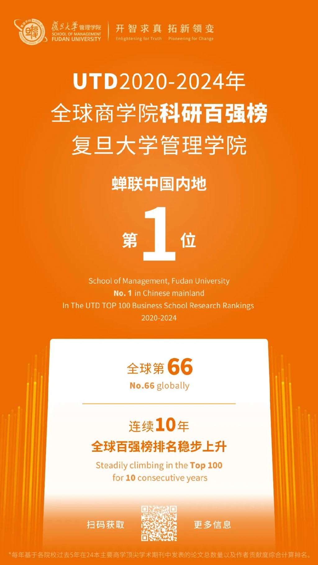 Fudan SoM Remains as the Global Top100 for Ten Consecutive Years in the UTD Top 100 Business School Research Rankings