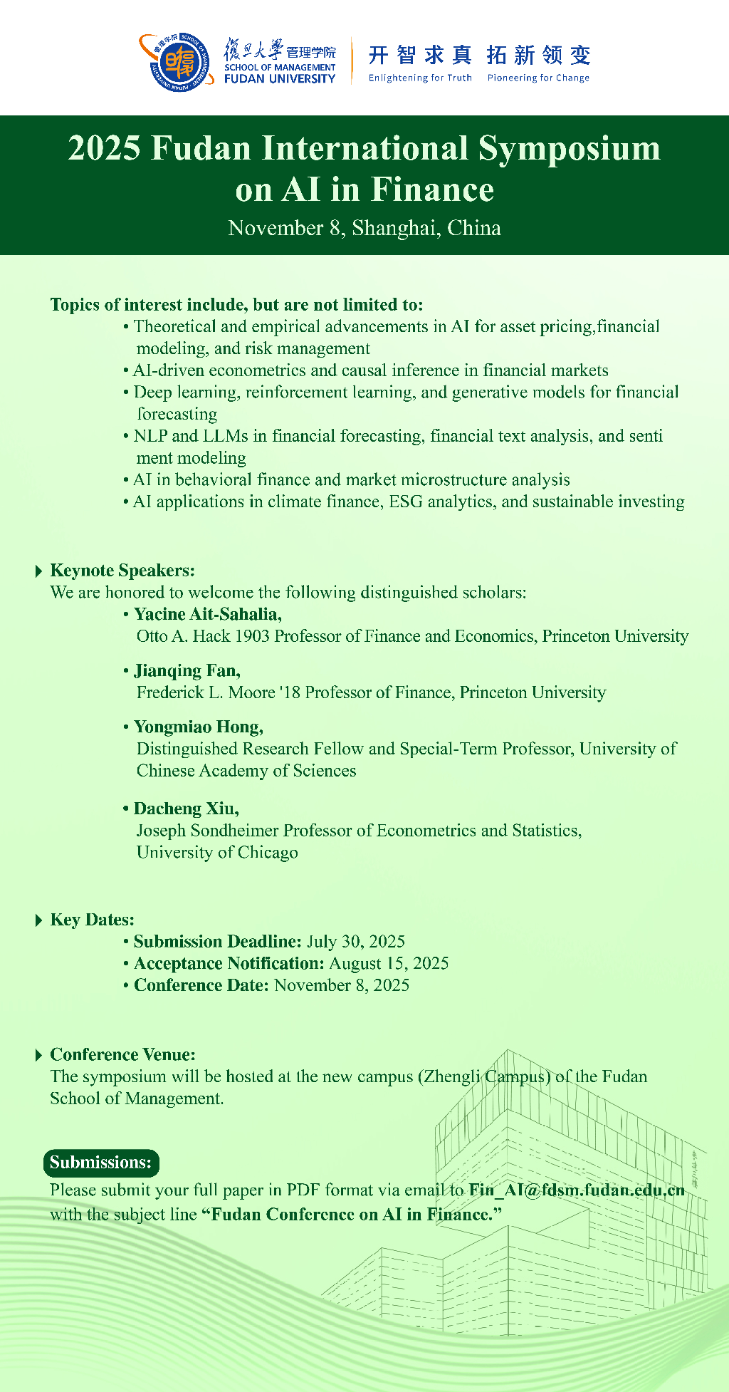 Call for Papers: 2025 Fudan International Symposium on AI in Finance