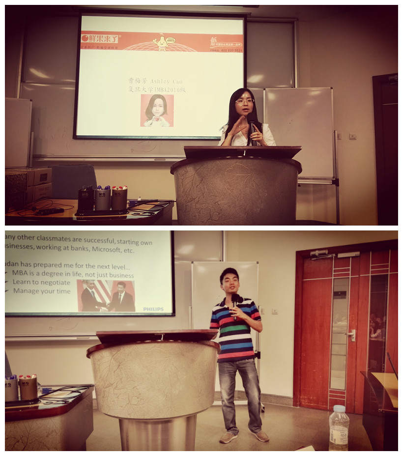 这次分享会前来的校友,涵盖了S3Asia项目,MIT项目,以及取得MIT、Yale MAM双学位项目。校友们的分享精彩纷呈,同学们听的目不转晴。最让大家感动的是,做为一位非常忙碌的创业者,曹梅芳校友驱车三个多小时赶来参加此次分享会,还为大家带来了“小”礼物,整整100盒新鲜水果!这不仅想起曾有一位百忙之中仍赶到校园做分享的校友所说“薪火不息就是感恩复旦的最好方式”。校友们求学、创业经验的无私分享引起了同学们对复旦国际MBA项目、对自身发展方向等诸多的思考,以至于结束后仍围着嘉宾与校友交流探讨,久久不愿散去,在大家的热情参与之下,原预计9点结束的分享会一直延续到了10点以后。