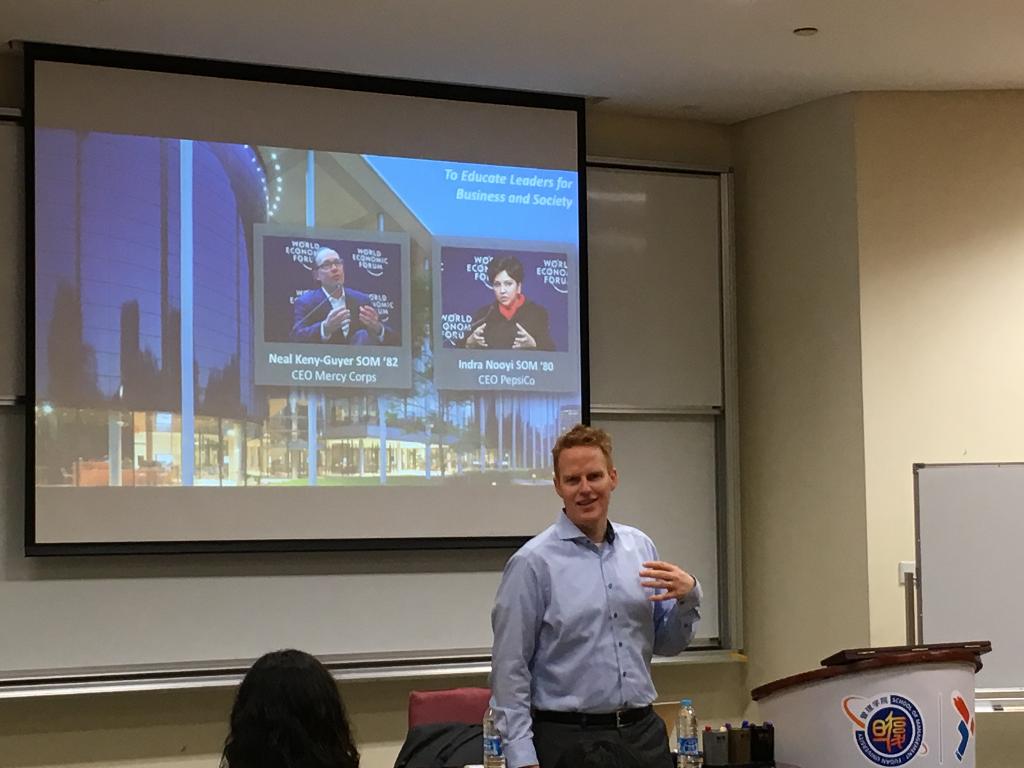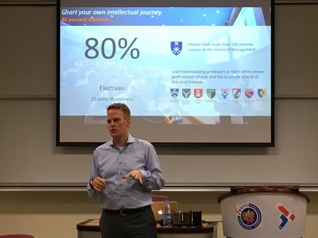 为了让同学们近距离感受世界顶级管理学院的特色,深入了解申请所需要的材料与流程,复旦MBA项目于近日特别推出了“MBA第二学位咨询会”系列专场活动,邀请到来自三所国际顶尖院校的高管及招生负责人与大家面对面交流。11月4日晚,耶鲁大学管理学院专场说明会在复旦管理学院本部举行。耶鲁大学管理学院高级副院长David Bach先生不远千里抵达上海,为复旦MBA的同学们详细介绍了YALE MAM项目背景、学院优势与招生条件。