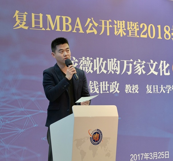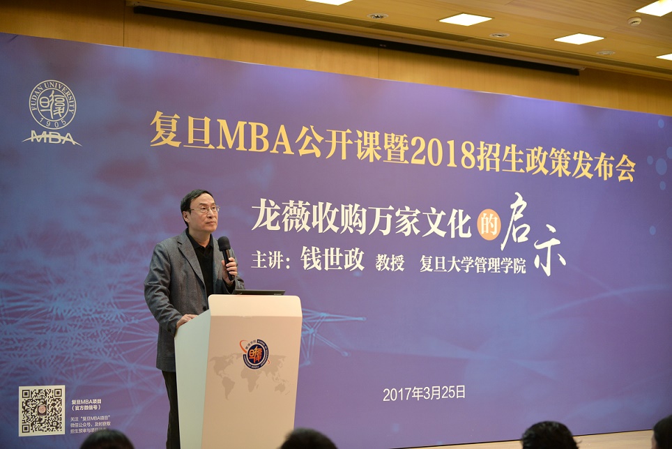 3月25日下午,复旦大学MBA项目2018招生政策发布会暨复旦MBA公开课在管理学院李达三楼成功举行。复旦大学管理学院教授、复旦MBA项目学术主任钱世政教授以“龙薇收购万家文化的启示”为主题,为同学们带来一场精彩而深刻的公开课。复旦大学MBA项目副主任孙龙老师对2018年招生政策围绕MBA项目情况和招生计划为申请人们进行了生动而详细的解读。