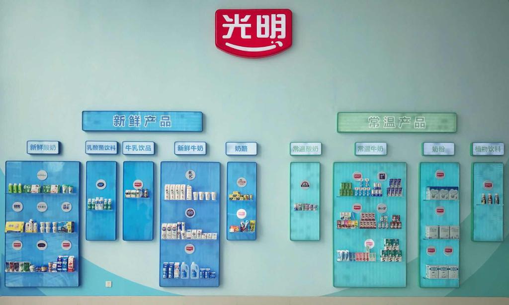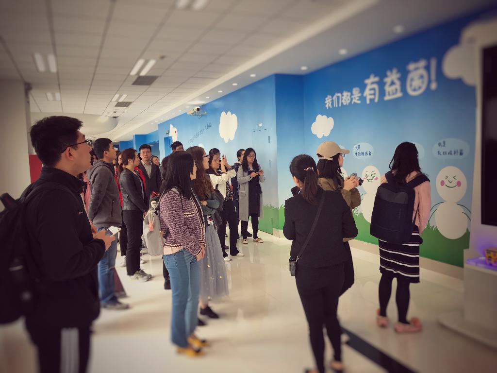 随后,讲解员向各位同学介绍了光明乳业的一些主要产品,包括新鲜产品和常温产品,新鲜产品包括新鲜酸奶、新鲜牛奶、牛乳饮品和奶酪等;常温产品包括常温酸奶、常温牛奶和奶粉等。值得一提的是,光明拥有世界一流的乳品研究院、乳品加工设备以及先进的乳品加工工艺,也是国内首先做出常温酸奶的企业,从莫斯利安开始,中国的常温酸奶才开始逐渐发展起来。此外,讲解员简单介绍了光明的企业概况,光明是中国领先的高端乳品引领者。同学们一边听解说一边认真浏览着墙上光明企业的悠久历史介绍。
