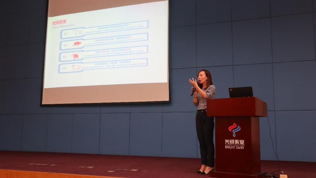 在参观完生产线后,光明乳业公关部总监沈总为大家详细介绍了百年光明的发展历史、核心优势和社会责任三个方面,充分展示了光明是一个创新、专注、勇气、共享、关爱和包容的企业。光明产业链的每一个环节都显示出光明对品质的追求,体现了光明“让更多人享受美味与健康的快乐”的品牌理念。