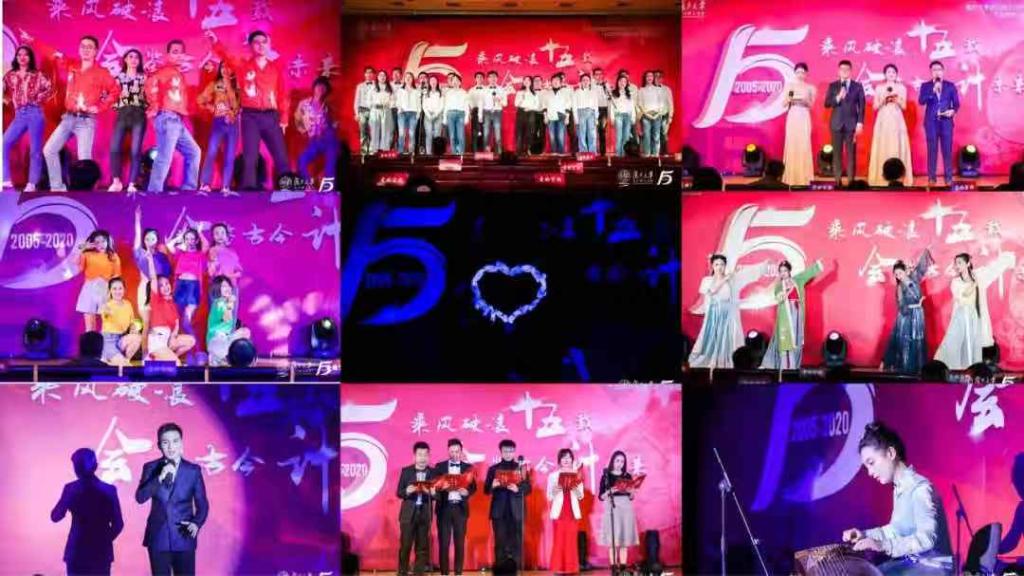 晚会正式开始之前,暖场视频为我们展示历届复旦cc学子的点滴回忆。晚上六点半,晚会以一段震撼的十五周年历程回顾视频正式开始。伴随着激昂的音乐,复旦MPAcc项目十五年来的光辉岁月如同画卷一般徐徐展开,从2005年的繁星点点到2020年星汉灿烂,现场师生穿越时间的层层阻隔,见证复旦cc的卓越成就与累累硕果。