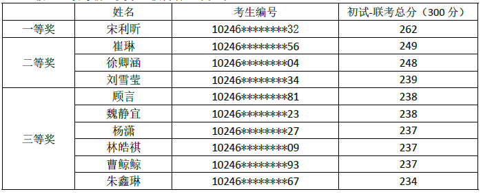 三等奖:人民币2万元奖学金,授予当年被录取的复旦MPAcc申请人中联考成绩名列第5-10名者。