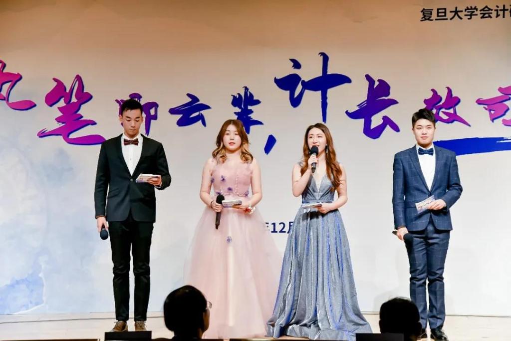 聚会以青春洋溢的舞蹈《New Boy》开场,随后主持人隆重请出莅临现场的复旦大学管理学院副院长吕长江教授致辞。吕教授的致辞文采飞扬,与唐代著名诗人白居易“隔空”对话、畅谈。吕教授深入地阐释了白居易的《放言五首·其三》:“赠君一法决狐疑,不用钻龟与祝蓍。试玉要烧三日满,辨材须待七年期。周公恐惧流言日,王莽谦恭未篡时。向使当初身便死,一生真伪复谁知?”他解释道:“赠君一法决狐疑”与会计相似,告诫我们做任何事情都要脚踏实地,不要急功近利。当我们面对社会不正常现象时,应当回到会计的初心:要看实质,不看形式。“周公恐惧流言日”一句则告诉我们所有的事情都要澄清,不要模棱两可,不要人云亦云。我们不要担心别人讲什么,社会做什么,更应当思考的是“你是谁”这一问题。我们需要拥有定力,思考未来的人生应当向什么方向努力。“向使当初身便死,一生真伪复谁知?”一句则告诉我们历史会给你正确的判断,这其实跟我们理念“会鉴古今,计谋天下”是一致的。吕教授指出,同学们应当有自己的思路和想法,在复旦CC项目的学习中不要单纯学习财经知识,还要学习人文、社科,甚至学理科的知识。吕教授提醒同学们,大家来复旦CC读的不仅是专业,更是大学背后的人文素养,是远方和诗。说到远方,同学们应当立足当下,做现在能够把握的事情。吕教授最后祝愿大家生活快乐,并对同学们提出期望:当十年、二十年之后别人问起你们的贡献时,你们首先要思考你们对自己是否做出了恰当的事情,自己是否活得充实。