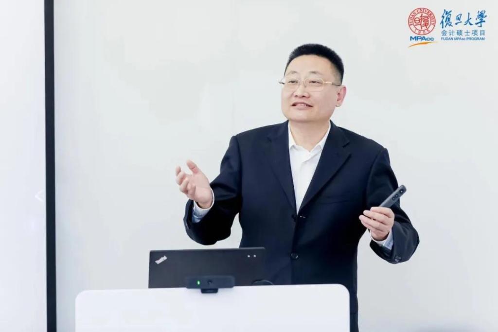 随后复旦MPAcc项目主任、学术主任娄贺统教授致答谢辞。娄教授以幽默的讲述回顾了复旦MPAcc项目16年的历史和此次活动的筹备情况。他说道,此次走进校友导师企业活动从“新冠元年”之前开始酝酿和规划,历时两年多。其次,娄教授介绍了复旦MPAcc项目的使命、愿景、价值观以及“三方九进”培养体系。复旦MPAcc项目旨在成为中国MPAcc项目最具影响力的引领者和最具竞争力的学习平台,着力从“学识、才能、品德”三面增进培养高端会计人才。此外,娄教授也简要回顾了复旦MPAcc项目丰富的特色活动:复旦CC读书会、CC粉享、趣味运动会、企业参访、第二课堂、新春晚会、财务案例分析大赛、校友导师见面会、国际交流交换、复旦CC公益财商社等。最后,娄教授再一次感谢了天驰君泰的大力支持,并表达了愿景:希望后续还有机会进一步与天驰君泰交流。
