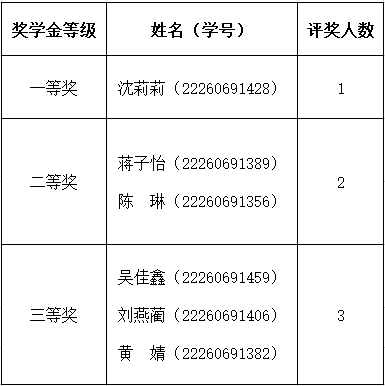 2022级1班获奖学生姓名及学号: