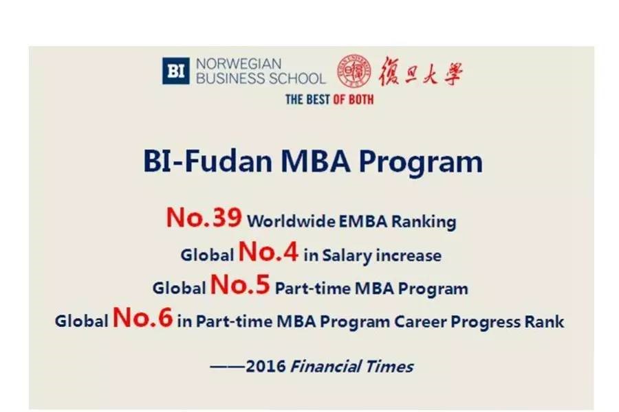 英国《金融时报》(FT)发布2016年全球EMBA项目排名,复旦-BI(挪威)MBA项目位列全球第39位,连续三年稳步提升。
