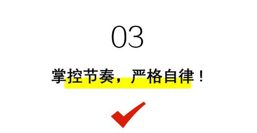 现实生活中,我们同样存在很多不自律的情况:上个月超额完成任务,为犒劳自己,索性本月休息一个星期;方案月初布置,月末才开始加班加点赶工;定下早睡目标,却每天刷手机至凌晨,第二天状态疲惫……工作、生活进度毫无节奏,导致每次任务的完成质量参差不齐,甚至身体状态不佳,疲于奔命。这些方式都是不可取的。