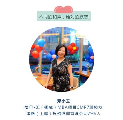 邓小玉是复旦-BI(挪威)MBA项目早期CMP的校友,毕业10多年后,却因为合唱团又重新“回家”。两年前,邓小玉退休了,闲不下来的她将校友合唱团作为了自己的“主业”。她说这不仅是发挥余热,也是珍藏一份似水年华的记忆。