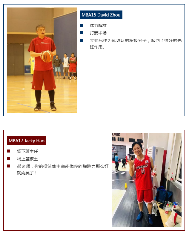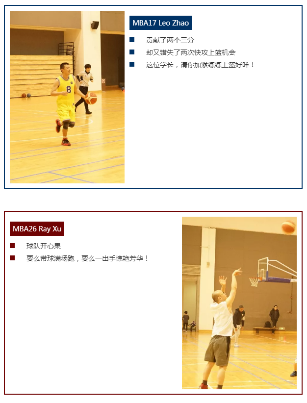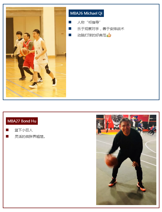 复旦-BI篮球队由不同班级的篮球爱好者组成,跨度从MBA1班到MBA31班,让我们来认识这次征战的主要上场队员:
