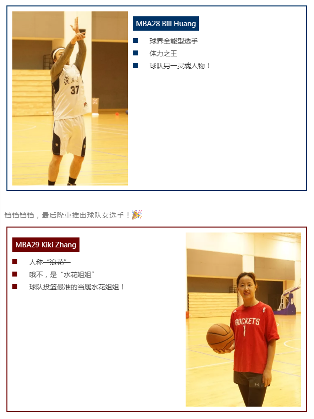 复旦-BI篮球队由不同班级的篮球爱好者组成,跨度从MBA1班到MBA31班,让我们来认识这次征战的主要上场队员:
