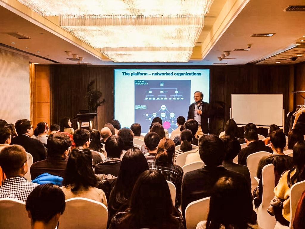 2019年3月5日晚,南京西路新世界丽笙酒店2楼,复旦-BI(挪威)MBA项目邀请到组织管理与控制课程的授课教授Prof.Hanno Roberts,以“数字转型下的组织变革”为主题,从课程中精选部分内容与我们一起探讨随着数字技术的发展,企业组织架构和管理流程该做出怎样的调整,以更灵活的身姿应对挑战。Hanno教授的演讲生动有趣,辅以真实的商业案例,和大家分享组织管理未来的发展之路。