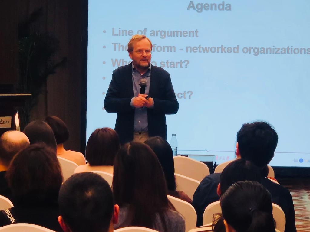 Hanno教授提到现在许多公司的内部组织管理结构仍普遍为等级管理制,层层框架,权责分明,但是工作效率并未提高,发展速度也跟不上当代市场的需求。管理层重视自己的领导权力,却无法最大程度发挥每个人的自身能力,从而造成资源的浪费。因此,网络化组织架构应运而生,这种模式下每个部门的员工都可能成为项目的核心人员,不仅能够最大化体现员工的自身价值,同时也可以为大家提供技术、资源、经验等信息的支持,推动项目高效地完成。该模式操作灵活,反应迅速,而且还可以为企业相应地减少人力成本。