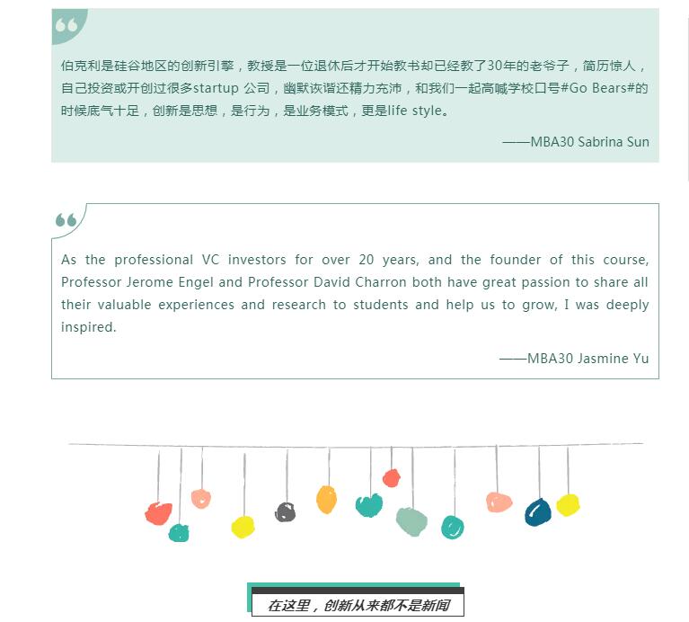 为期一周的课程由Jerome Engel教授和David Charron先生共同担任。Engel教授是知名的创新、创业和风险投资专家,为世界各地的企业及政府领导人提供演讲和咨询。而Charron则负责多个MBA课程的教学工作,领域包括商业模式创新和创业战略、创业案例研究等。他自身是一位企业家,也是多家公司的天使投资人。在两位实战与教学经验丰富的教师的带领下,同学们推开了海外课程《Entrepreneurship in Silicon Valley and Beyond》的大门。