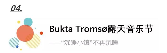 在每年7月,特罗姆瑟将举办Bukta露天摇滚音乐节(Bukta Tromsø Open Air Festival),挪威最好的乐队和国际音乐家都会来此参加演出!而且,每年都会汇聚诸如来自美国的Iggy Pop、Patti Smith,瑞典的Kent、The Cardigans乐队,爱尔兰的Thin Lizzy、苏格兰的Biffy Clyro等等国际知名的音乐人,可见其魅力之大。